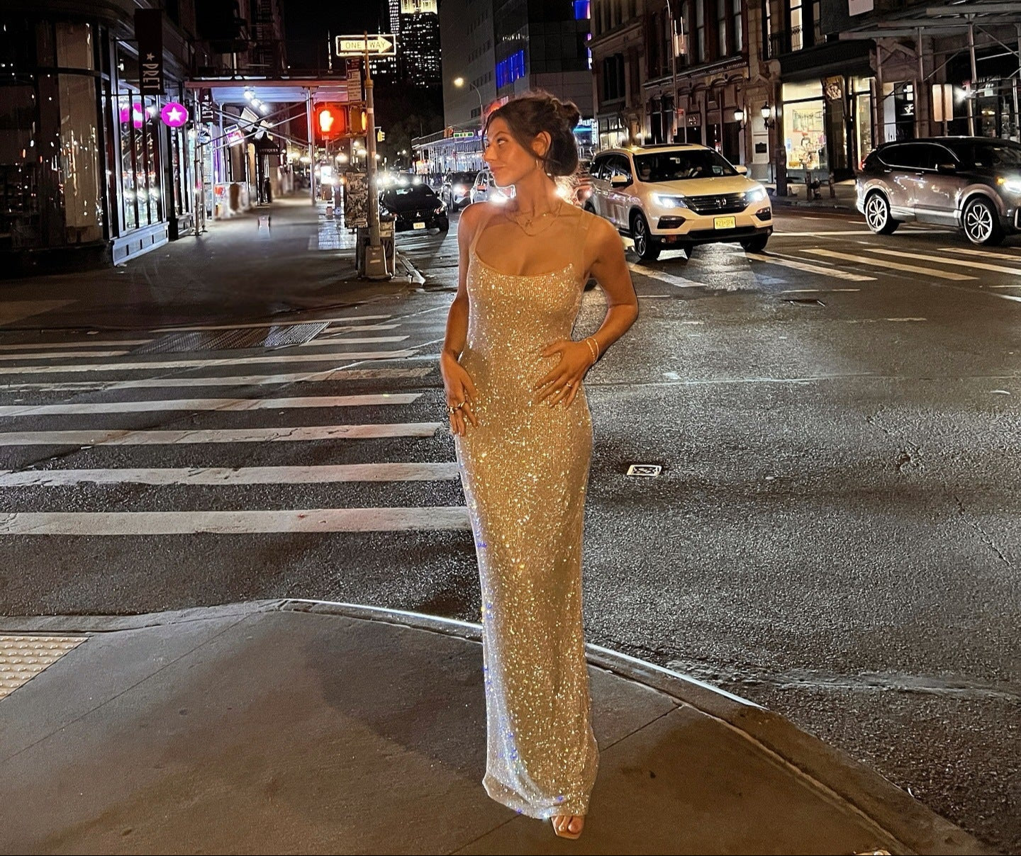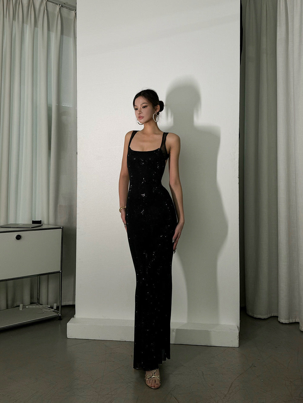 This dazzling dress, with its sparkling crystal work and sophisticated design, is a must-have for special occasions and red carpet chic. With its elegant straps, form-fitting shape, and sparkling stone embroidery, it's designed for an unforgettable entrance into the evening.