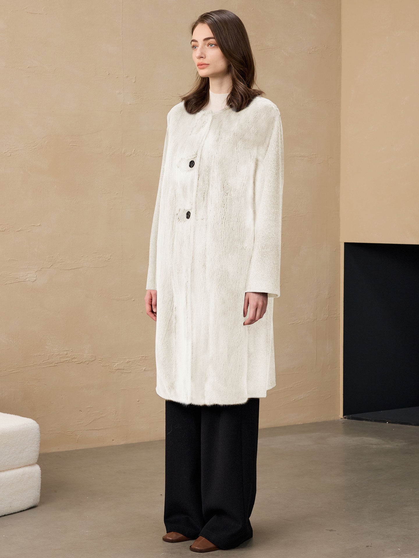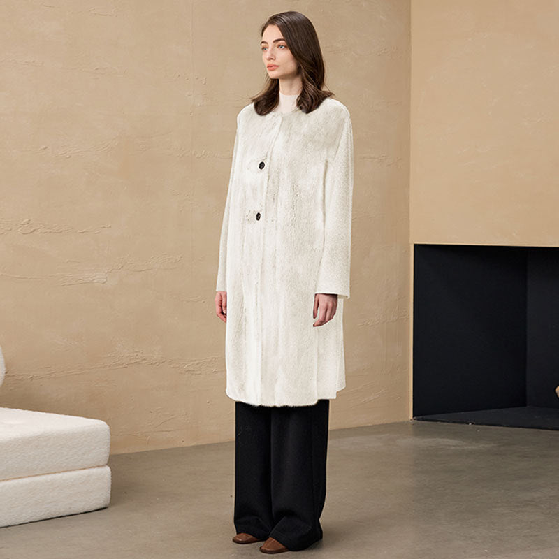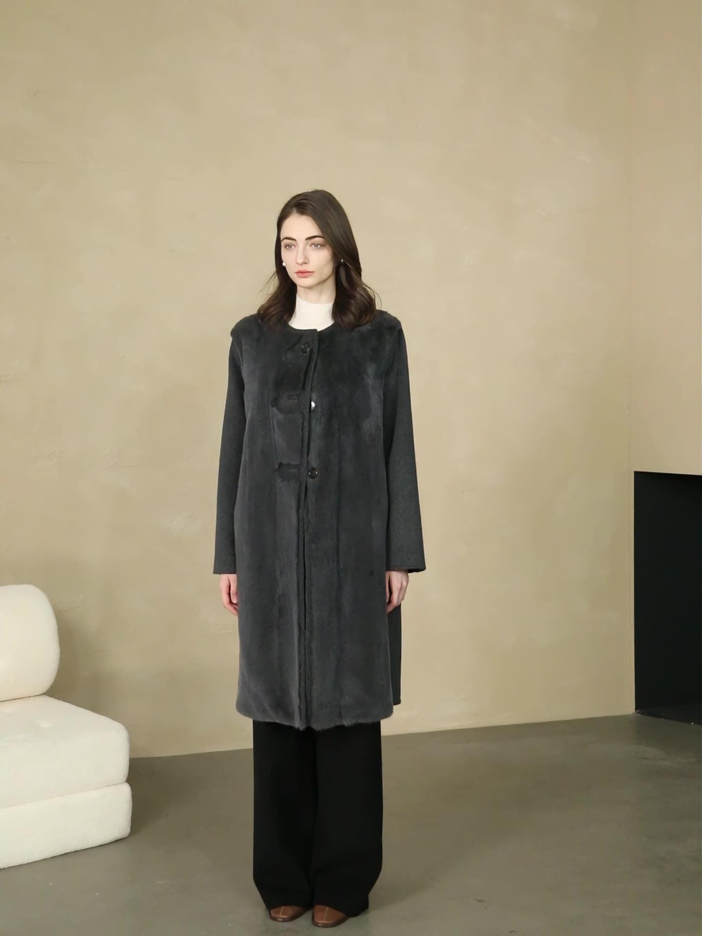 - ✓ **Sıfır Dış Detay:** Yuvarlak yaka ve tamamen gizlenmiş kapama sistemi, silüeti kesintisiz ve akıcı tutarak gerçek **'Quiet Luxury'** estetiğini yansıtır.