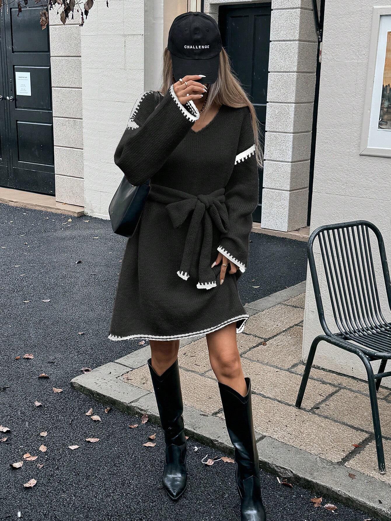 The Noelle Cozy Grace cardigan combines modern urban style with a soft knit texture, making it both comfortable and elegant. Its belted design creates a feminine silhouette, while its long form and oversized cut elevate everyday style to a sophisticated level.