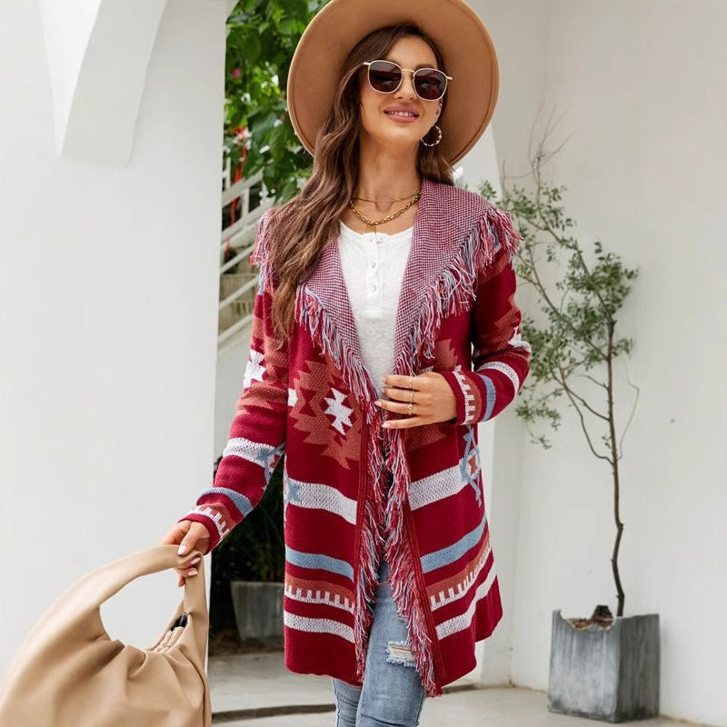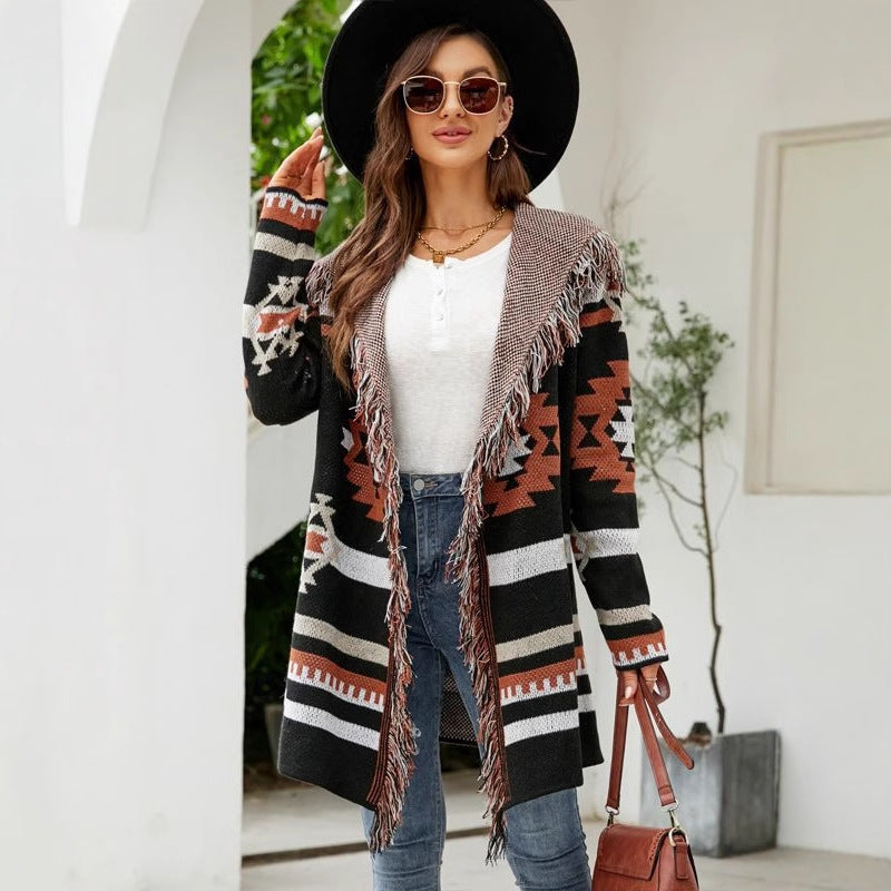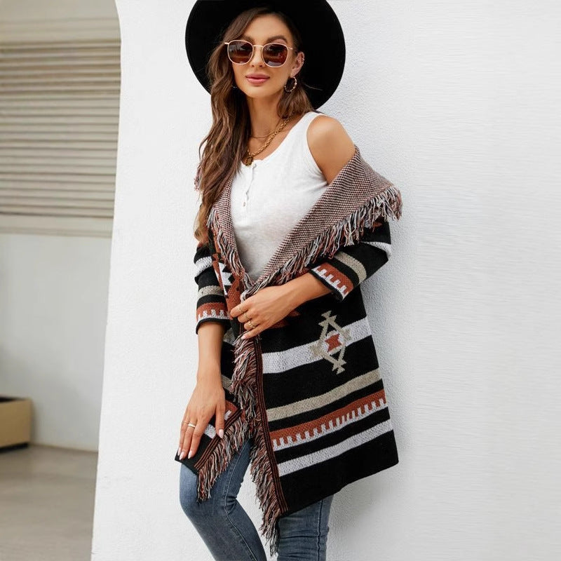 ✨ Highlight your style with bohemian touches! This long-sleeved cardigan with tassel details adds energy to your everyday outfits while keeping you warm. It's poised to become an essential piece for the fall and winter seasons.