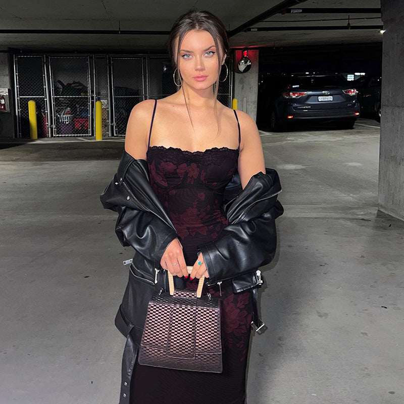 ✨ A blend of timeless allure and modern elegance: Seraphina accentuates her steps with the sophisticated energy of burgundy tones. Its form-fitting silhouette, elegant slit detail, and thin straps reflect feminine energy in the most powerful way.