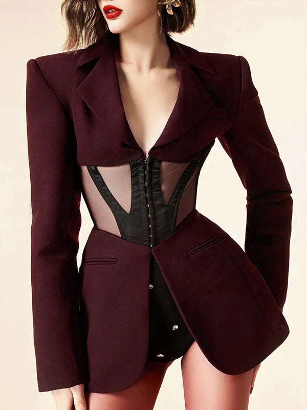 Mayce Elegante ™ | Blair V-Neck Corset Detail Blazer