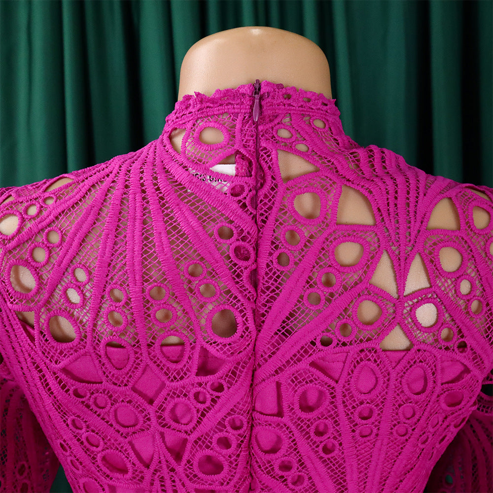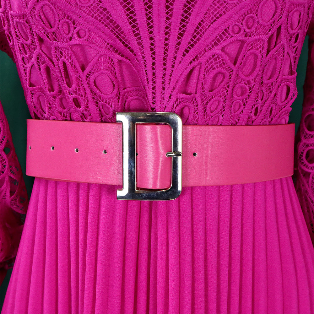 The Lace Pleated Midi Dress – Scarlett by Mayce™ is a refined balance of romantic detail and modern structure. Featuring an intricately patterned lace bodice paired with a fluid pleated skirt, this silhouette is designed to move effortlessly between elegance and confidence.